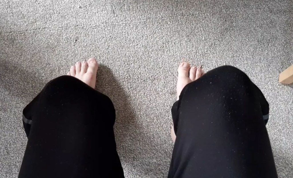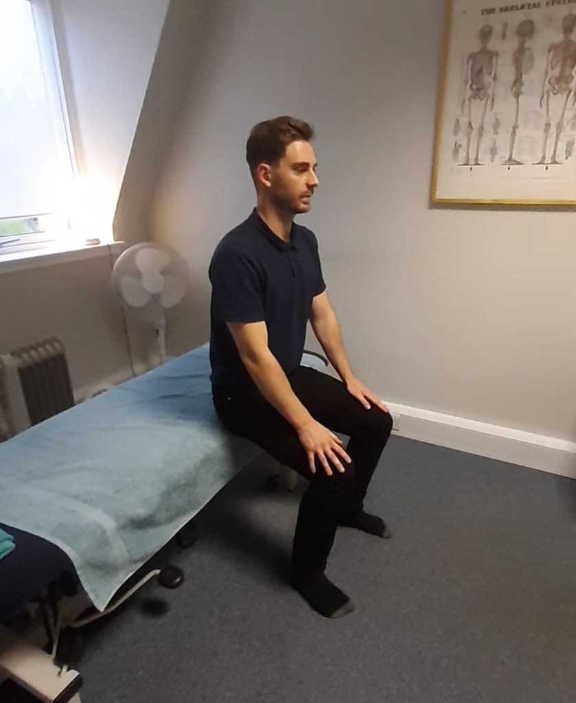 - Seated on the edge of a firm chair (dining chair is perfect).
